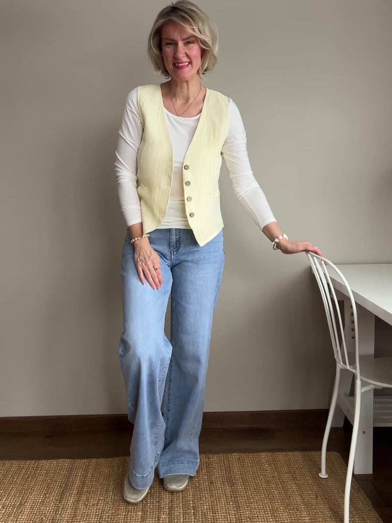 Great jeans with long, straight legs and a beautiful, stylish color. Pockets in the front and back. Good waist height and really good elasticity.