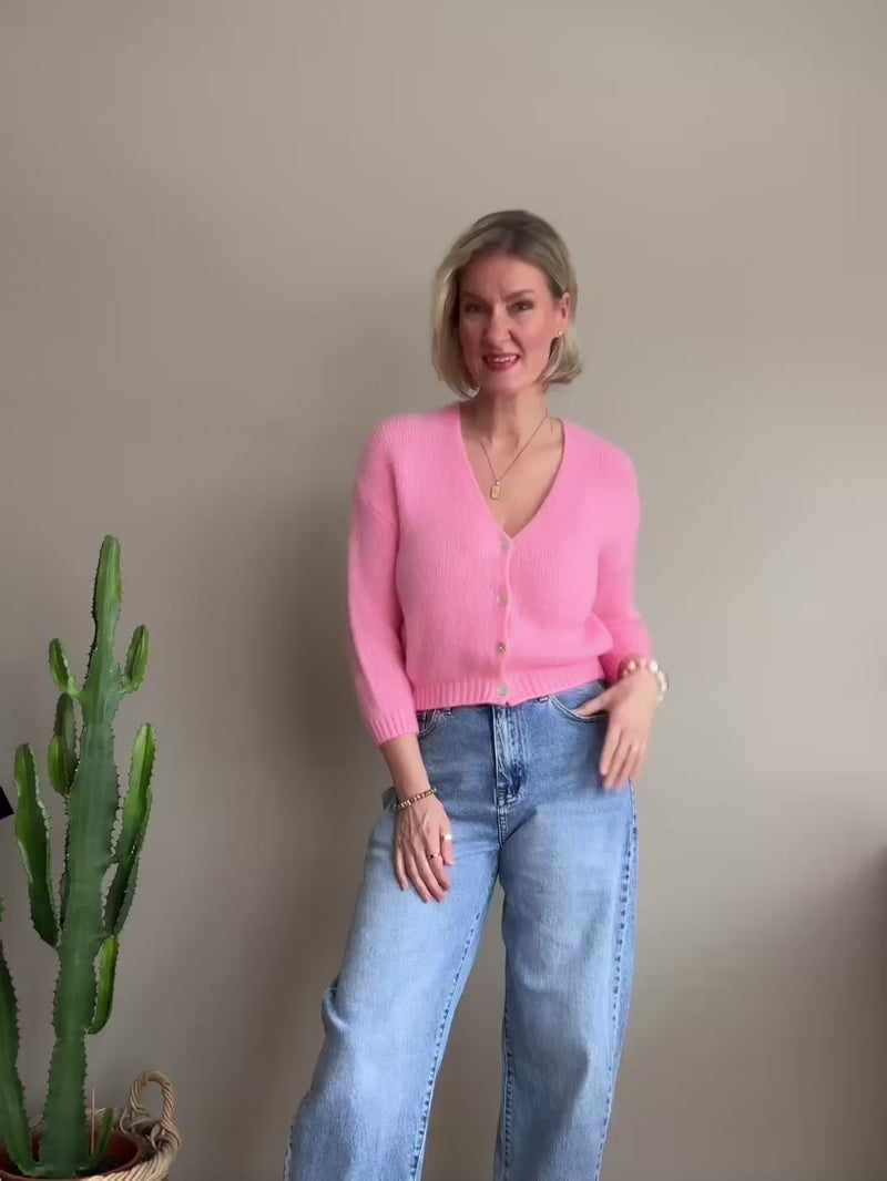A shorter cardigan is easy to wear in different situations. Soft and comfortable to wear. The airy knit provides just the right amount of warmth without feeling heavy. The shorter length adds lightness to the outfit and makes it particularly easy to combine with, for example, high-waisted trousers or a skirt. The cardigan works as such or as a light layer under a jacket or coat.