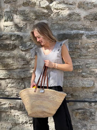 Uuuh mikä katseenvangitsija! Upea toppi, jossa olkapäillä röyhelöt. Suora malli, v-pääntie ja takana niskassa Bloom Sis Bloom -amuletti.